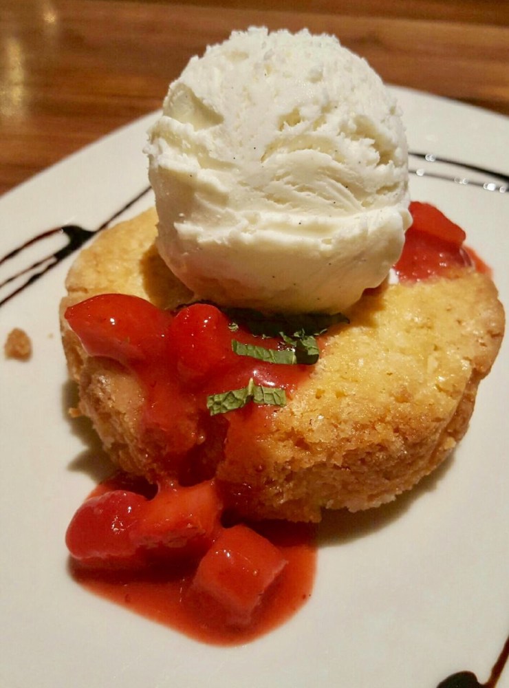 We could have died in a happy food comas at this point, but what respectable foodie leaves a meal without dessert? All someone had to do was say “Butter Cake” and we were in…. because butter… and cake. This dessert is homemade butter cake topped with a minted strawberry compote & vanilla bean ice cream, garnished with sweet balsamic.