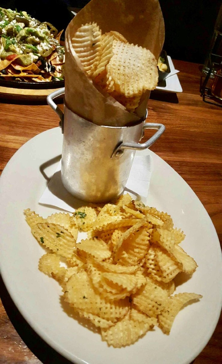 The Garlic Parmesan Waffle Chips are a new menu item, $3 on happy hour. These homemade chips are a perfect side for a cold beer. The cheese, garlic flavors shine through. Delicious.