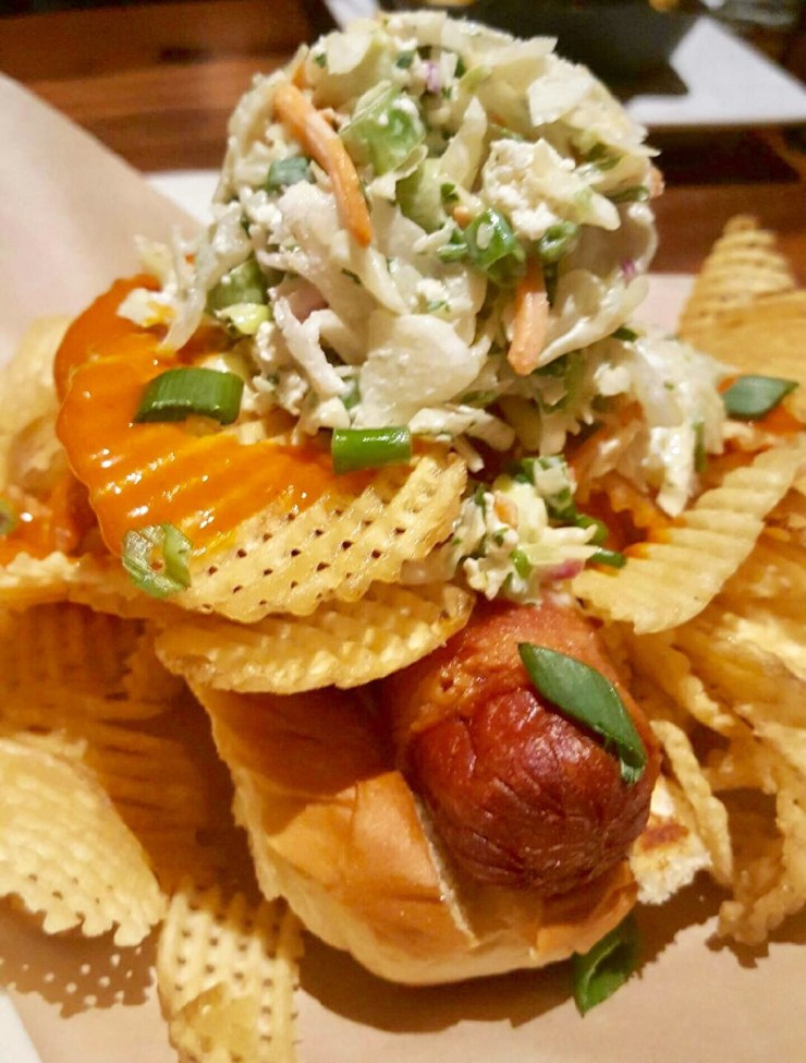 Diets aren’t fun though, so let’s move on to this mouth watering app, The Dirty Dog. This appetizer is damn good. It’s a bacon-wrapped Nathan’s hot dog in a King’s Hawaiian Bun topped with potato chips with bleu cheese dressing, buffalo sauce, and slaw. I can die happy now. This is probably the best $6 bucks you’ll ever spend, so go now.