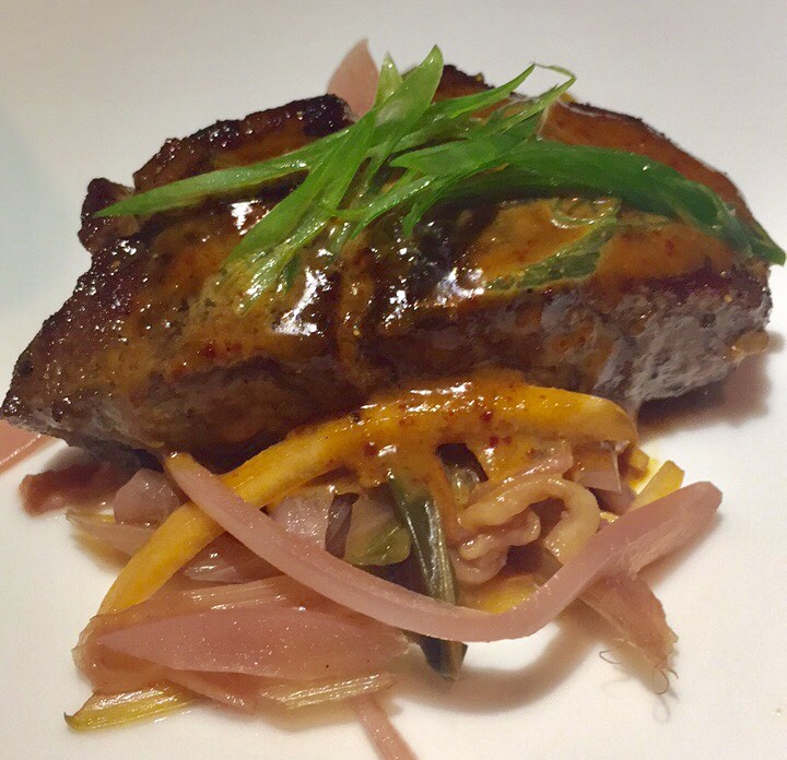 I was excited just to see the name “Handouken Beef” on the menu and immediately caught the Street Fighter reference. How fun! This dish is made with seared beef medallions paired with pickled veggies and spicy ginger vinaigrette. It’s a spicy one, so order with caution if you struggle with hotter fare, but we both really enjoyed this one.
