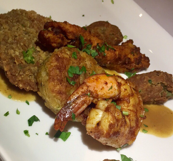 Next up was the Gumbo Deconstruction. I’ve never had a deconstructed gumbo, so I was excited to check this one out. It comes with grilled chicken, seared shrimp, fried okra, fried green tomatoes, griddles rice cakes with creole gumbo, and it is one hearty combo. The flavors were rich with some mildly spicy undertones.