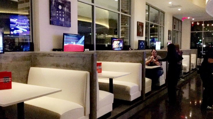 In addition to having giant video games to play at the bar and in common areas, you can pick the booth with your favorite old school game and play with your group. I relived my glory years while attempting to play 007 with the same intensity the 20 year younger version of myself had.