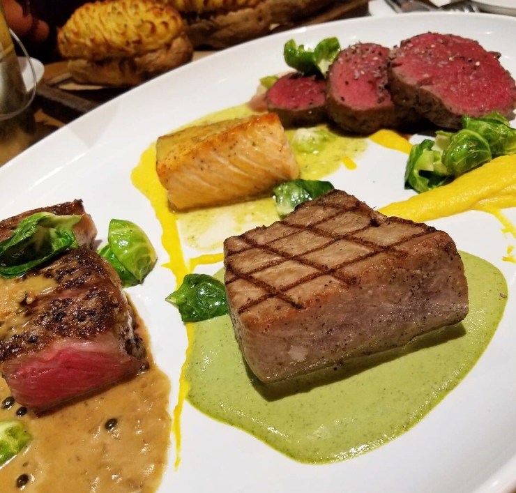 We tried a variety of entree courses as well. Our top steak pick was the tenderloin steak, but the New York strip with peppercorn brandy was also packed with flavor. The red wine demi glaze on the tenderloin really made it stand out. It was cooked perfectly, melt in your mouth, medium rare. We also sampled the grilled ahi with jalapeno lime, which was fantastic and my favorite sauce. The seared salmon with lemon butter was also top notch.