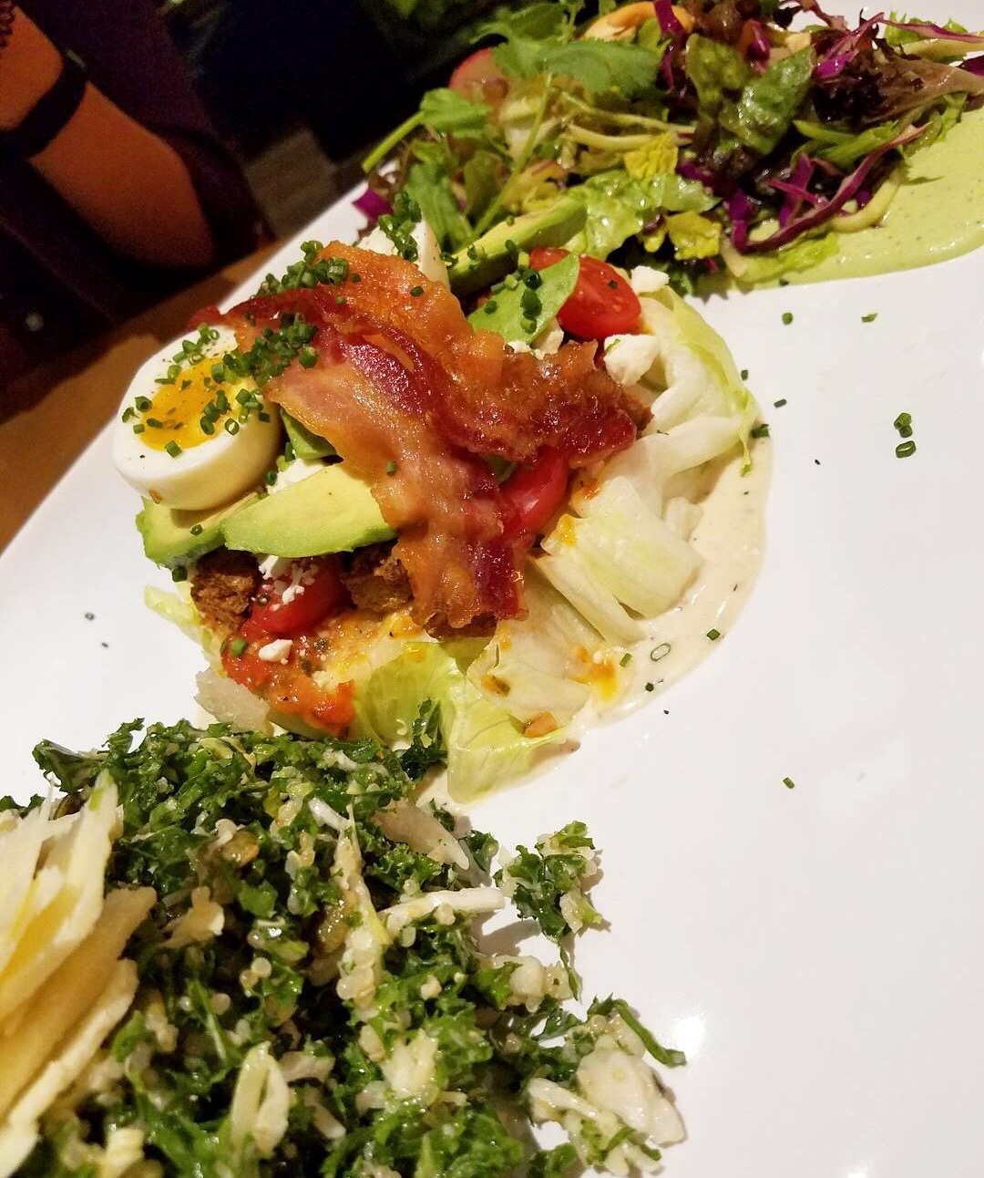 We got to try a sampler of three salads: the kale and quinoa, the seared ginger tuna salad, and the avocado cobb salad. We both liked all three, but favored the cobb salad best. You really can’t wrong with any of the three.
