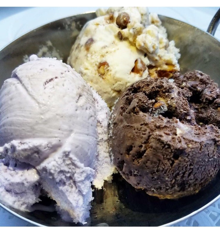 We also tried the ice cream assortment. It’s a lovely trifecta of ice cream with three flavors: vanilla, lavender honey and dark chocolate. All three were good, but I personally love the lavender honey.