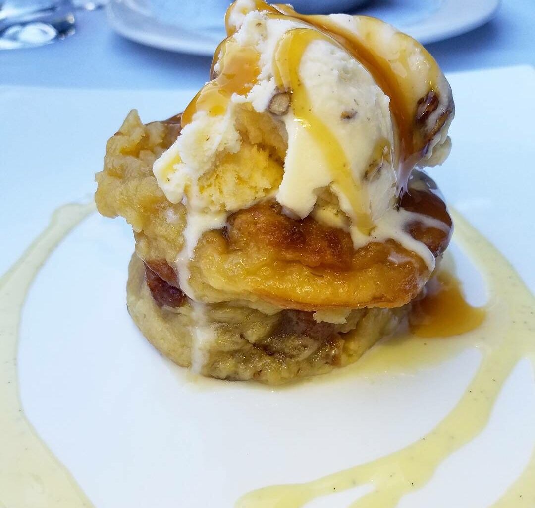 Being the dessert lovers we are, we tried two. The first was a white chocolate and grand marnier bread pudding, served with a butter pecan ice cream. It was a large serving, and very tasty.