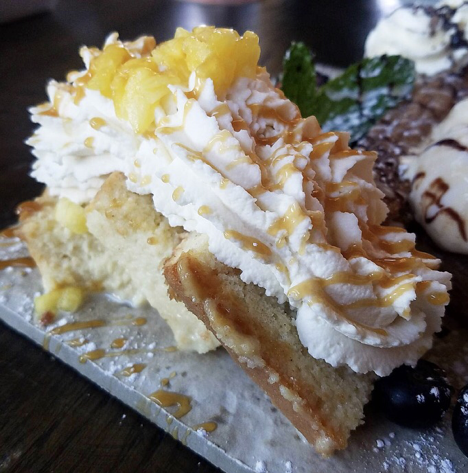 Finally we were on to try a sampler of dessert. First up with the Quatro Leche cake made with four milks: coconuts milk, condensed, evaporated, and whipped cream. This dessert is then finished off with honey cream, fresh pineapple, and garnished with berries. This is a lighter spin on the traditional Tres Leches cake, and the pineapples on top keep it feeling light and refreshing.